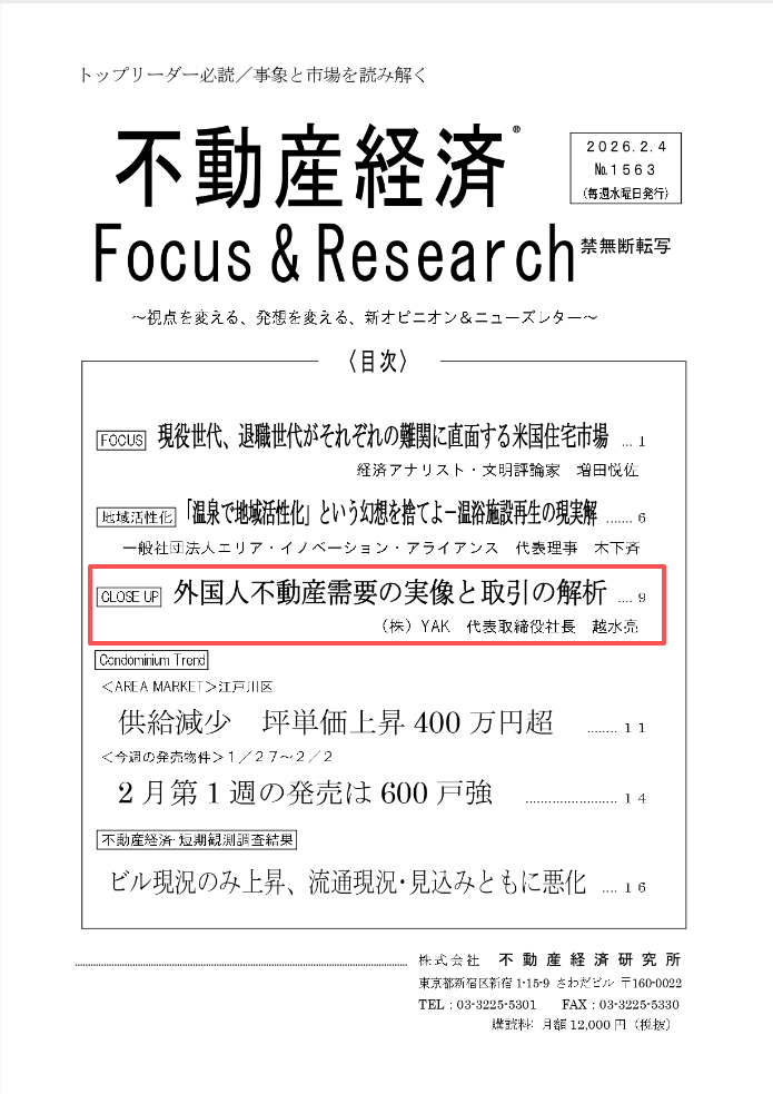 また、本件の内容は、不動産経済研究所が発行する、不動産を中心に政治・経済など幅広い分野を扱う週刊専門誌『不動産Focus & Research』に掲載されました!